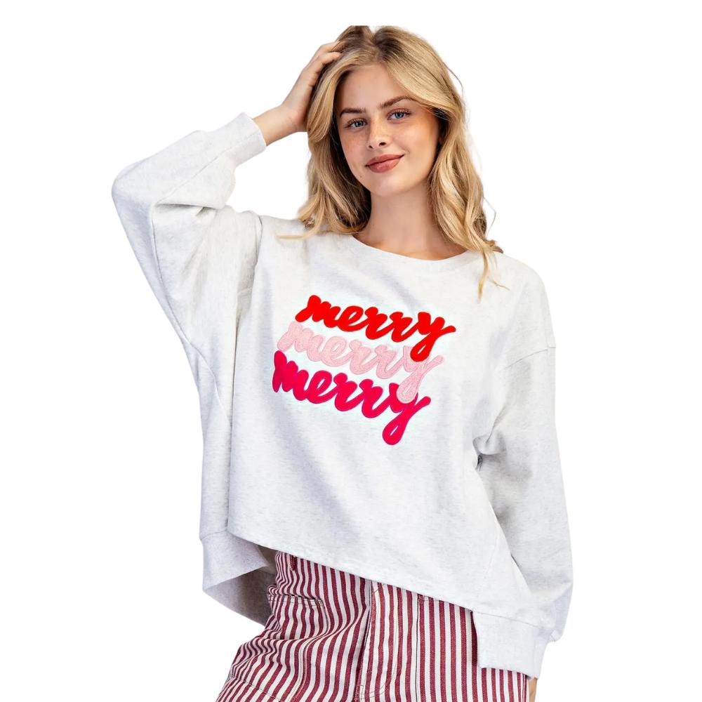 Gray "Merry" Pullover Sweatshirt