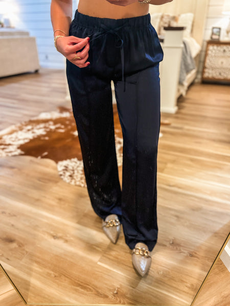 Step into comfort and style with the All Set Navy Palazzo Pant. Featuring a playful elastic drawstring waistline and a wide leg silhouette, these pants offer a relaxed yet classy vibe. Made from silky fabric, they glide effortlessly while front pockets add a practical touch. Perfect for work or a chic day out, these palazzos deliver a cute, polished look you’ll love.