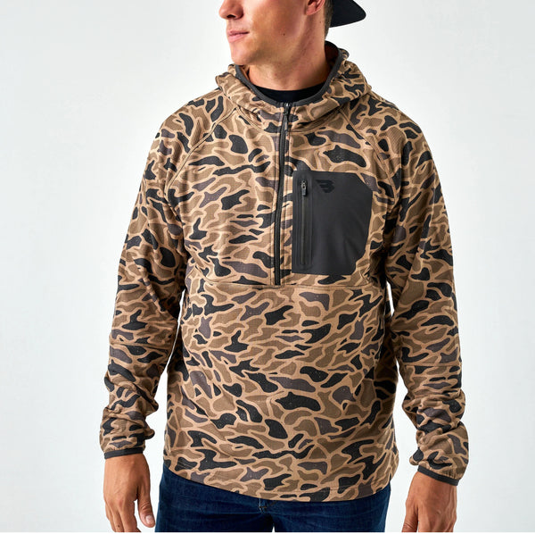Engineered for performance and comfort, the BURLEBO Blaze Tech Long Sleeve is built for life outdoors. Crafted from specialty bonded brushed knit fabric, it combines a lightweight, soft interior with breathable warmth. The relaxed fit and extended length offer premium airflow and added coverage, while the raglan sleeves with thumbholes keep you moving freely. Finished with a functional zippered chest pocket for secure storage, this piece is perfect for early mornings, cool weather hunts, or everyday wear.