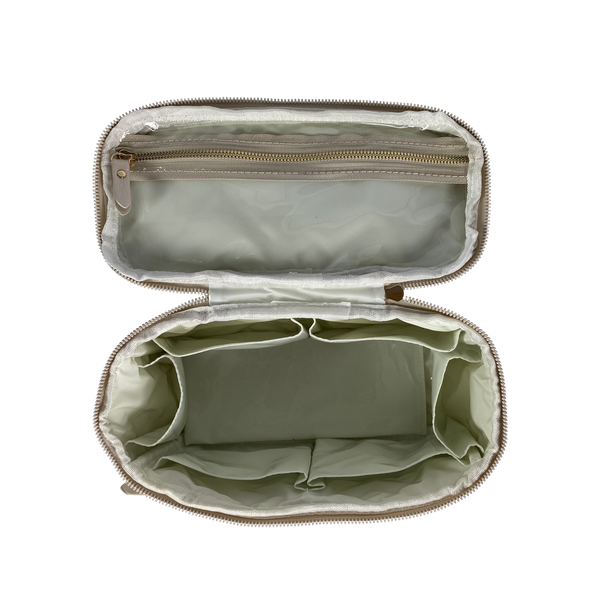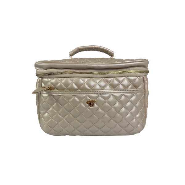 Soft and feminine, this luxe pearlized vegan leather elevates this Train Case to another level. (It's always a favorite bridal gift.) Experience the perfect blend of versatility and organization. The large center compartment and six interior side pockets ensures your beauty and toiletry essentials are always elegantly organized.