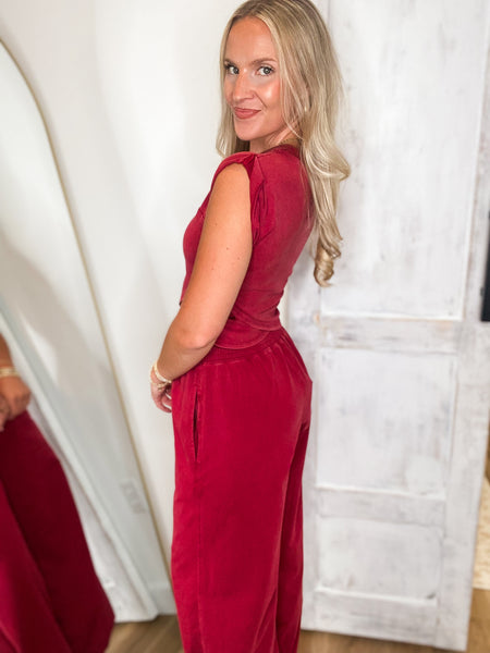 Step into effortless comfort with the Crossing Boundaries Berry Red Washed Jogger Pant. Featuring an elastic waistline and ankle cuffs, these joggers offer a relaxed fit that moves with you. Front pockets add practical charm, while the washed berry red hue keeps the look cute and casual. Perfectly cozy for all things fall and winter!