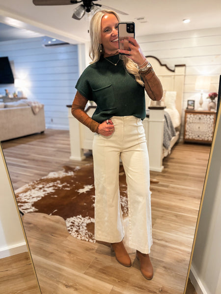 Stay cozy and cute in the Feeling Better Hunter Green S/S Sweater. Featuring a playful mock neckline and a handy front chest pocket, this soft knit gem offers a relaxed silhouette perfect for layering through fall and winter. Its classic style pairs effortlessly with everything, making it your go-to for endless comfy, cozy outfit options. Embrace warmth and charm in one stylish sweater!