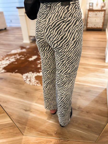 Step out in style with the Fun Time Vintage Zebra Straight Just Black Denim. Featuring a high-rise waistline and a flattering straight leg silhouette, these slightly cropped jeans sport a bold zebra print that adds a fun, sassy vibe to any look. Perfect for bringing your outfit to life, they offer a playful twist on classic denim that’s both cute and confident.