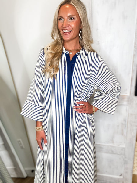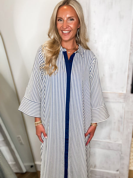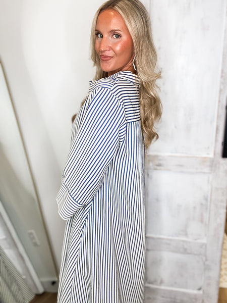 Long Distance Indigo Stripe Maxi Dress
