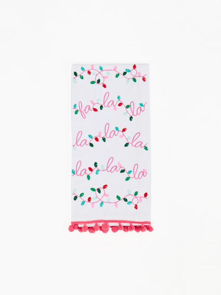 Add playful charm to your holiday kitchen with our Fa La La Tea Towel, featuring cheerful lettering, festive sequin accents, and a fun pom-pom trim. This whimsical towel brings sparkle and joy to your seasonal decor, perfect for holiday baking, gifting, or brightening up your space all season long