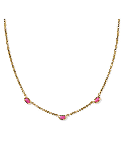 Mini Elisa Fuchsia Pendant Vintage Gold Necklace