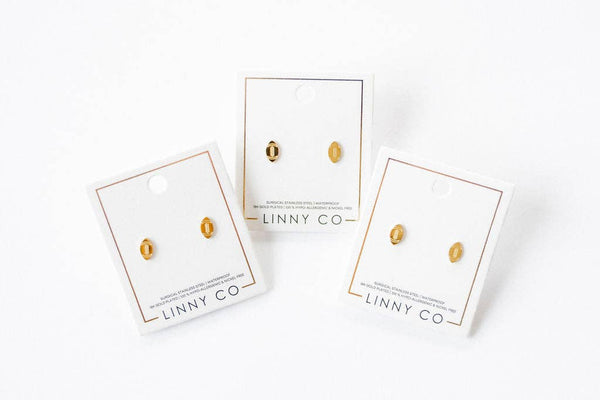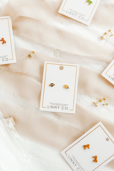 These durable, waterproof earrings are perfect for adding a sporty touch to any outfit, whether you're attending a game, practice, or just want to show off your team spirit. The timeless football design makes these studs an excellent choice for sports fans.
