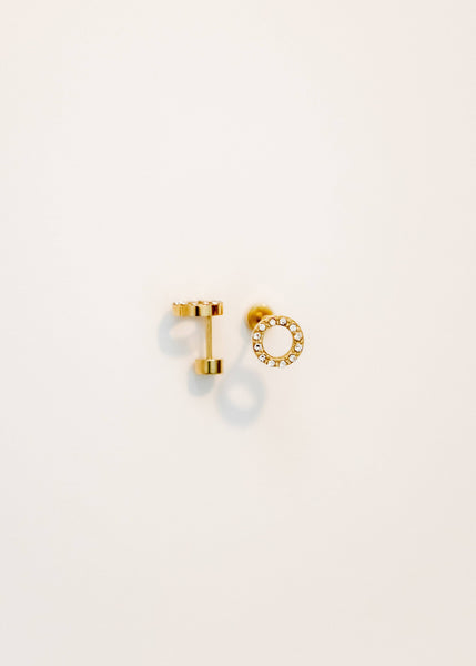 With a timeless design that radiates elegance, the Lainey Gold Stud Earrings feature an 8mm round open circle adorned with small CZ stones for a sparkling, sophisticated touch. Crafted from 100% surgical-grade stainless steel, these earrings are lightweight, durable, and hypoallergenic, perfect for sensitive ears. The innovative screwback design ensures a secure and comfortable fit.