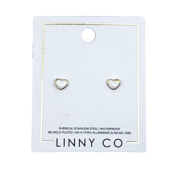 Waterproof and versatile, these white heart earrings pair beautifully with huggie earrings for a layered, stylish look. Perfect for adding a delicate pop of sparkle to any outfit.