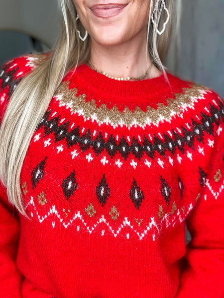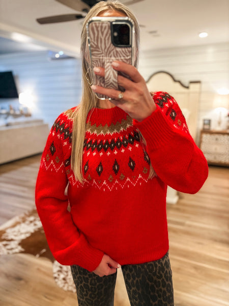 Speak Out Red Multi Printed Knit Sweater