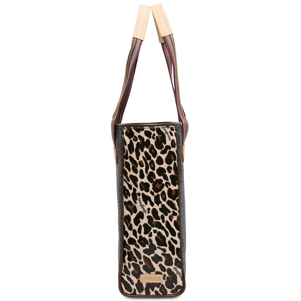 The Chica Tote is the smaller version of our signature Classic Tote. With a slim silhouette perfect for life-on-the-go, the Chica carries all you need with ease. Topped with comfortable woven handles, this multi-functional tote is trimmed in natural leather and crafted to hold its shape. Our tote features a roomy interior and pockets.